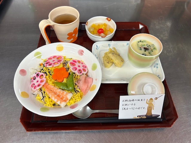 ・ちらし寿司 ・たけのこの紫蘇天 ・茶碗蒸し ・フルーツ