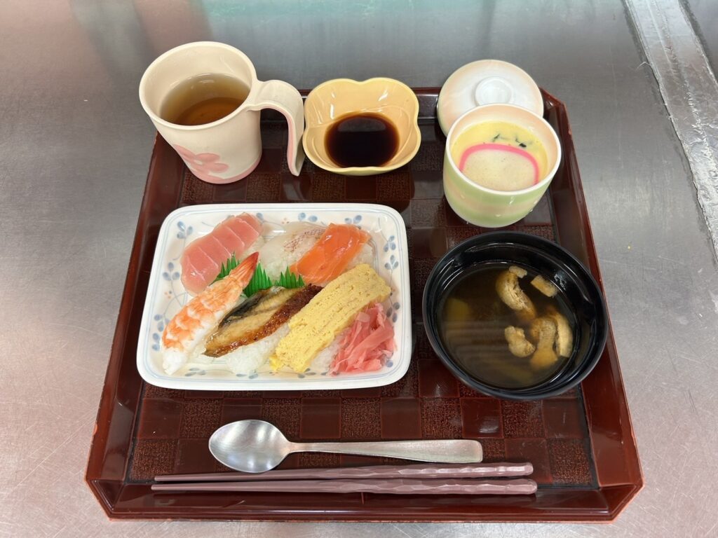 ・にぎり寿司(まぐろ・鯛・サーモン・えび・うなぎ・玉子) ・赤出汁 ・茶碗蒸し