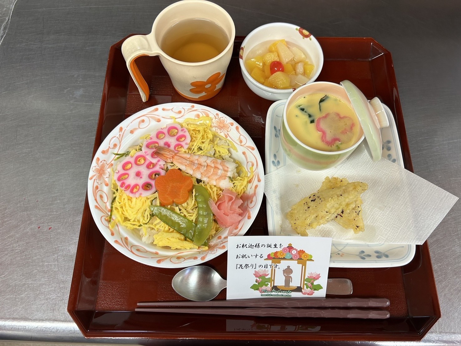 ・ちらし寿司 ・たけのこの紫蘇天 ・茶碗蒸し ・フルーツ