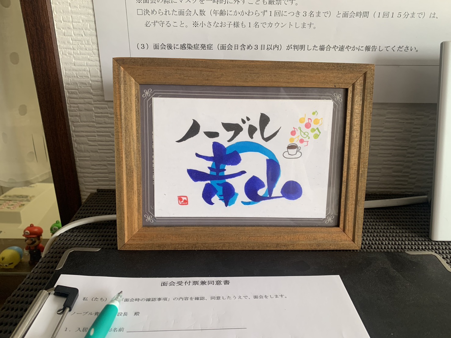 こちらは、施設入口の面会受付簿を書いていただく所に